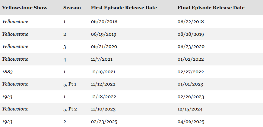 How To Watch Yellowstone In Release Date Order